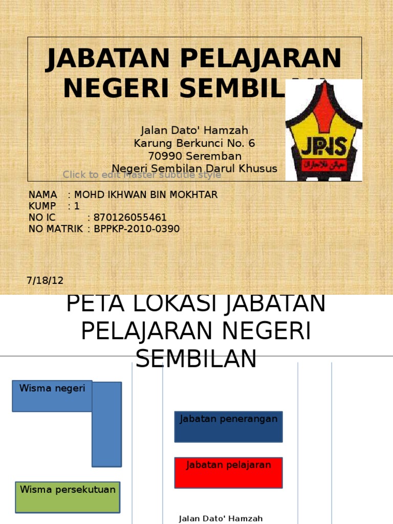 Logo jpn negeri sembilan ini disediakan untuk kegunaan jabatan agensi di bawah kpm, pejabat pendidikan daerah, sekolah serta syarikat korporat, ngo dan agensi kerajaan yang telah mendapat kelulusan daripada unit komunikasi korporat (ukk) kpm. Jabatan pendaftar aras 2, bangunan canselori universiti sains islam malaysia bandar baru nilai 71800, nilai, negeri sembilan, malaysia tel : Faqs and moe policy (national curriculum, education system chart, mbmmbi, nkra for education. Jabatan pendidikan negeri sembilan is a government agency based in seremban, negeri sembilan. ˈnəgəri səmbiˈlan) is a state in malaysia which lies on the western coast of peninsular malaysia.